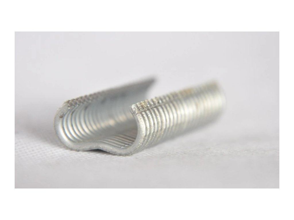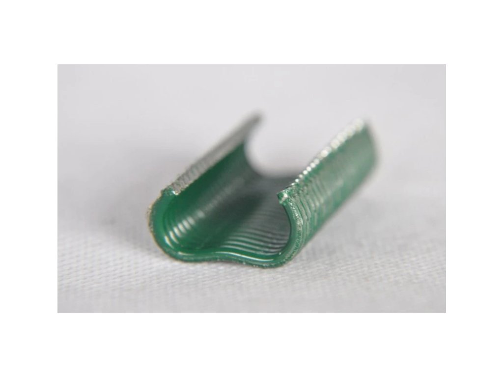 Ocelové svorky zinkované i poplastované pro připevnění pletiva k napínacímu drátu pomocí kleští ROCAFIX. Balení 1 000 kusů.